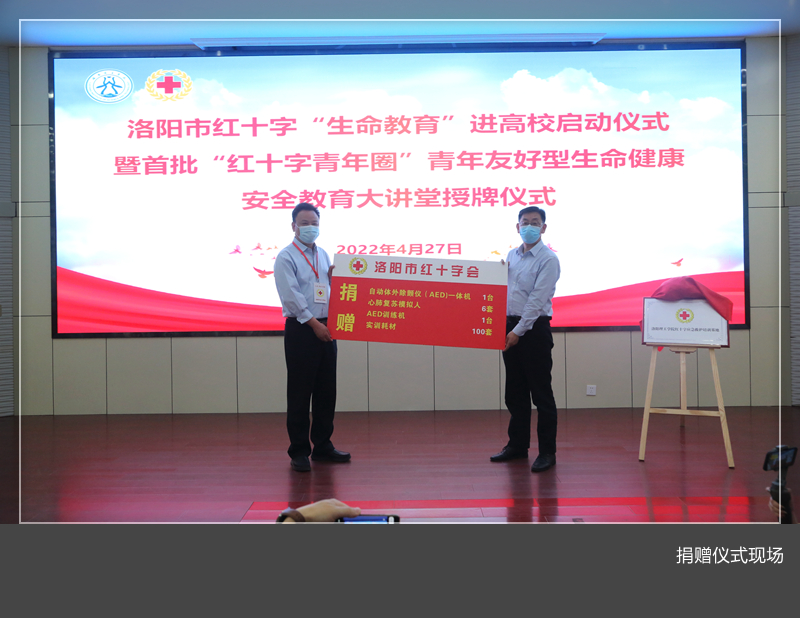 会上,市红十字会办公室主任田苏辉传达了《洛阳市红十字会“生命教育”进高校实施方案》《洛阳“红十字青年圈”青年友好型生命健康安全教育大讲堂实施办法》。王少侠、曾涛为驻洛高校首批“红十字青年圈”青年友好型生命健康安全教育大讲堂授牌,并为“乐鱼(中国)红十字应急救护培训基地”揭牌。胡恩立代表学校接受市红十字会向我校捐赠的自动体外除颤仪和应急救护培训器材。