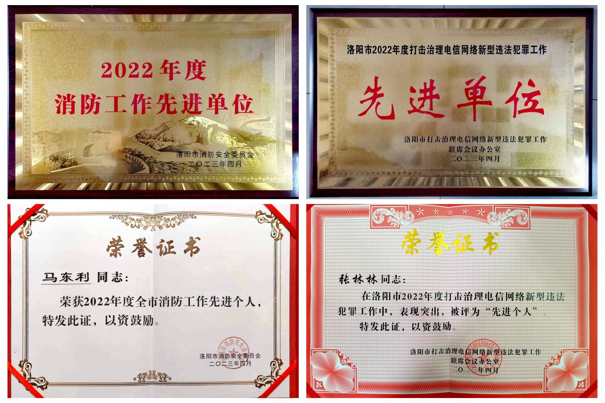 近日,洛阳市消防安全委员会、洛阳市打击治理电信网络新型违法犯罪联席会议办公室分别下发文件,对2022年度洛阳市消防工作先进单位和先进个人、洛阳市打击治理电信网络新型违法犯罪工作先进单位和先进个人进行表彰。