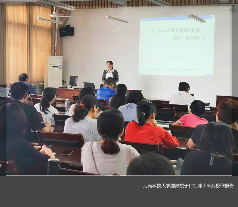 7月27日上午,应我校材料科学与工程学院邀请,河南科技大学于仁红博士来校就工程教育专业认证申请与自评相关工作做学术报告,报告题目为《专业认证背景下的课程教育——目标、实施与评价》。材料学院及其他相关院系教师100多人参加了报告会。