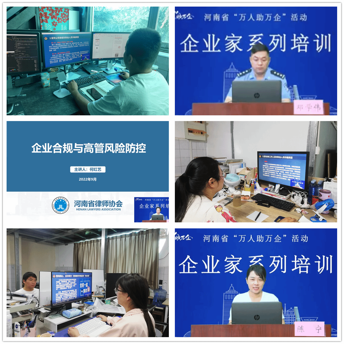 为进一步提高园区企业防范电信网络诈骗能力,切实增强企业管理人员法律保护意识,9月22日,我校国家大学科技园组织园区企业在线参加河南省“万人助万企”企业家培训会,本次活动由河南省工业和信息化厅主办,主题为防范诈骗与法律知识。
