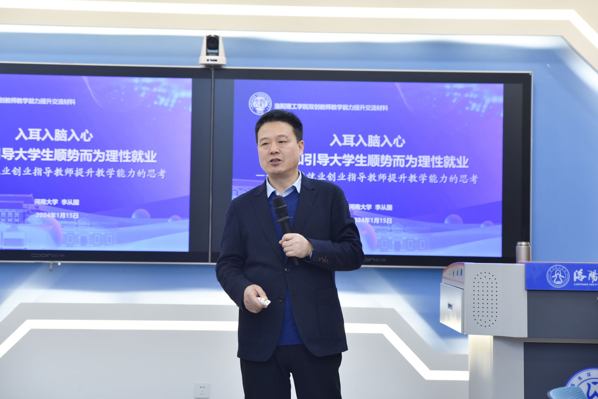 为提升我校就业创业教师授课能力,促进学校就业创业课程体系建设,1月15日下午,首批河南省大学生创业指导名师、河南大学就业指导中心主任李从国教授应邀到我校作专题报告。