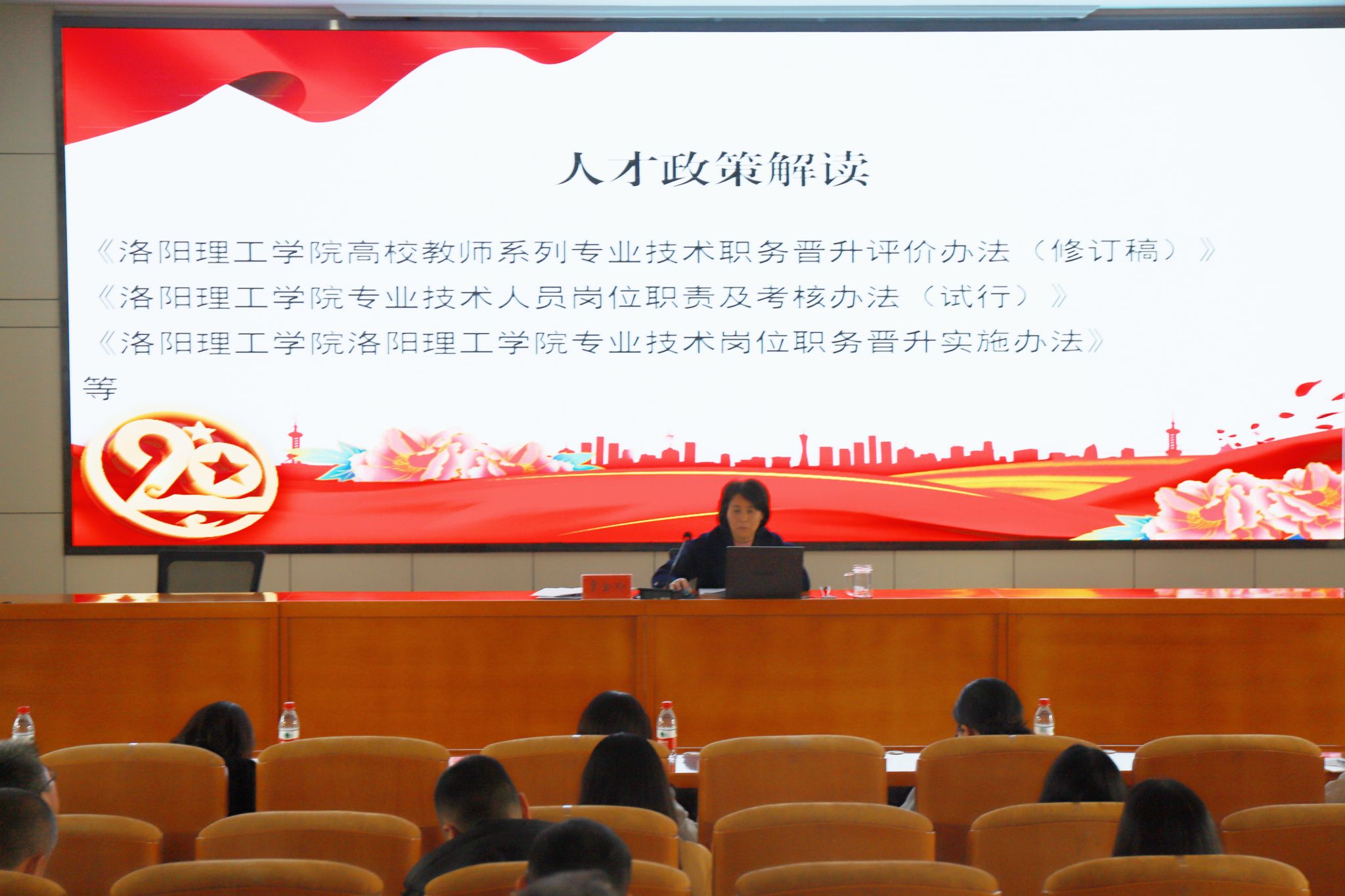 贾金玲以《聚焦人才战略 推动高质量发展——学习贯彻党的二十大精神》为题,介绍了党的二十大召开的时代背景,围绕党的二十大报告的主题,从过去五年成就和新时代十年的伟大变革等十五个章节进行了全面系统的介绍,辅导报告重点对第五章节实施科教兴国战略,强化现代化建设人才支撑进行了阐述和辅导。辅导报告还就学校职称文件、专业技术人员考核办法等文件进行了解读。