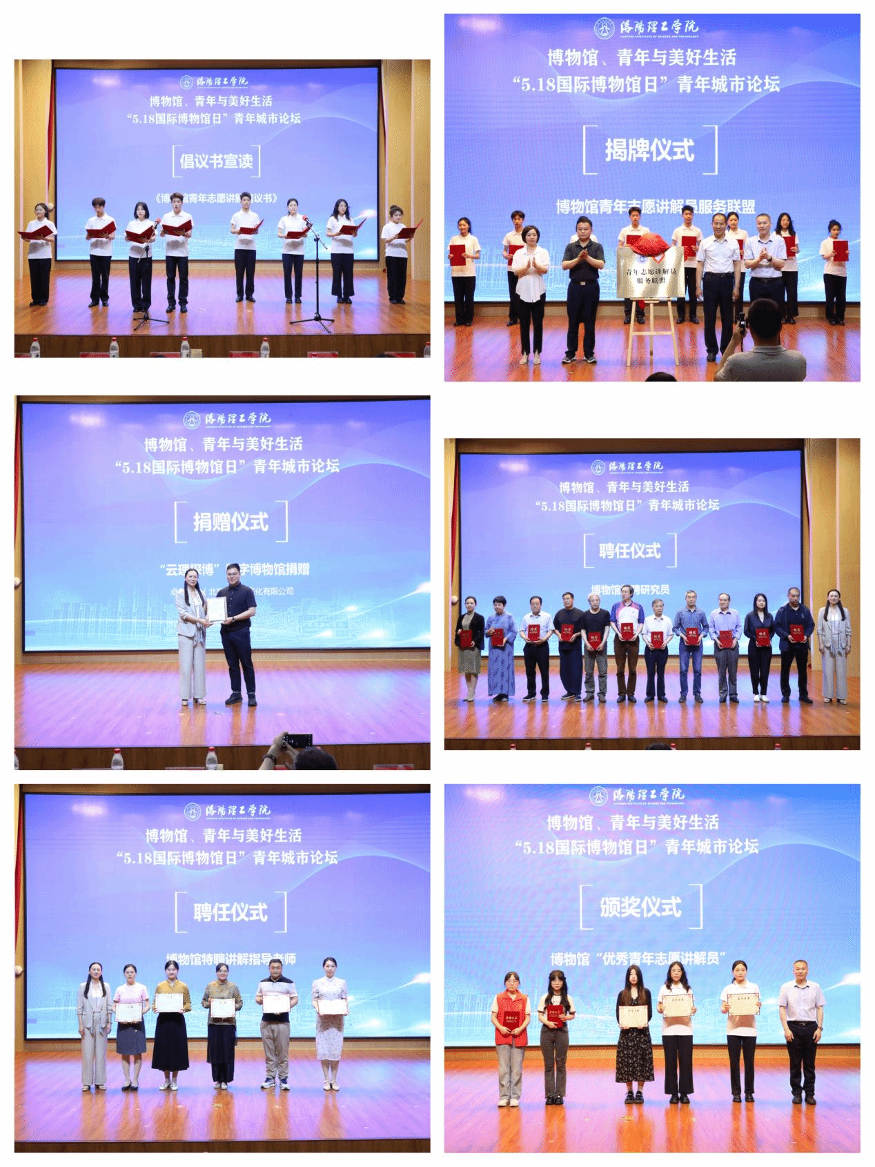 “河洛寻根”特藏展集中展示了图书馆、博物馆精选出来的河洛文献、地契拓片、非遗大袖衫等藏品70余件。青年城市论坛上举行了“博物馆青年志愿讲解服务联盟”揭牌仪式、数字博物馆捐赠仪式、博物馆特聘研究员和特聘讲解指导老师聘任仪式、“优秀青年志愿讲解员”颁奖仪式。