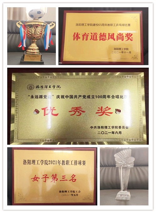 二、丰富文体活动,増彩会员生活。积极组织教职工参加各项工会文体活动,取得了优异的成绩。在庆祝建党一百周年和建校65周年系列活动中,先后获合唱比赛优秀奖、排球赛第三名、足球赛第四名、羽毛球赛第五名,乒乓球比赛体育道德风尚奖等奖项。丰富了会员生活,增强了团队凝聚力,提高了大家的工作热情。