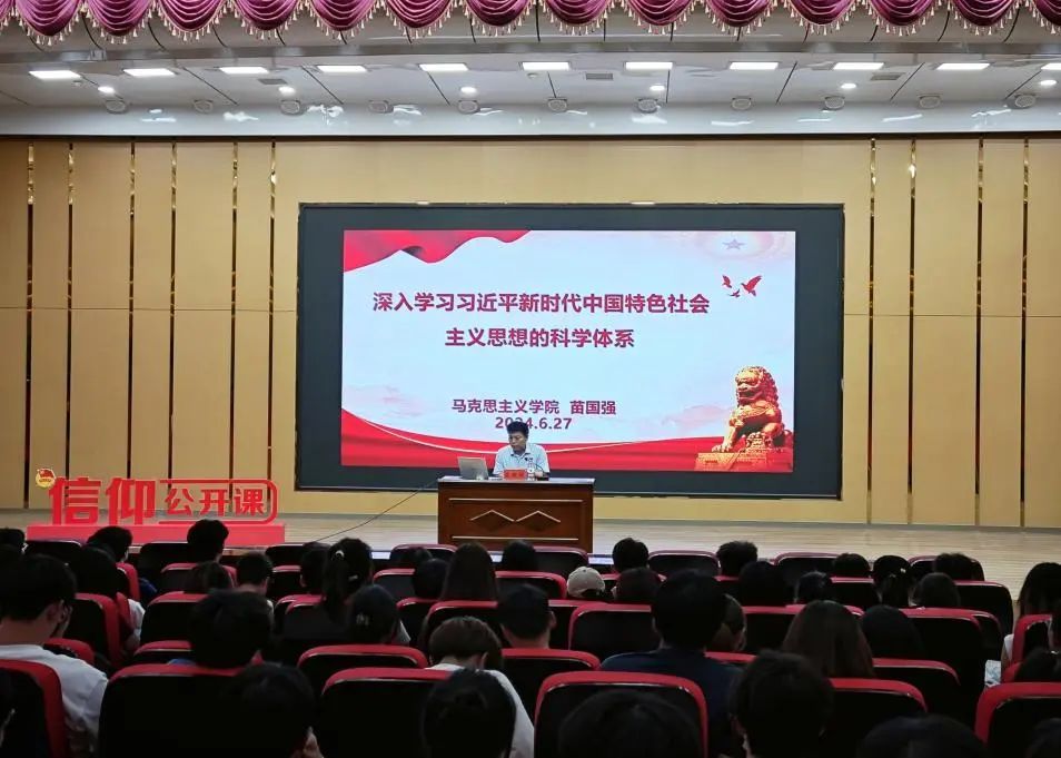 第二讲由我校马克思主义学院院长苗国强教授,围绕《深入学习习近平新时代中国特色社会主义思想的科学体系》为主题展开,深入探讨其内容及意义。习近平新时代中国特色社会主义思想包括“十个明确”“十四个坚持”“十三个方面成就”等核心内容。同时,习近平新时代中国特色社会主义思想也是马克思主义中国化的最新成果,对于推动社会主义现代化建设,实现国家富强、民族复兴意义巨大,影响深远。