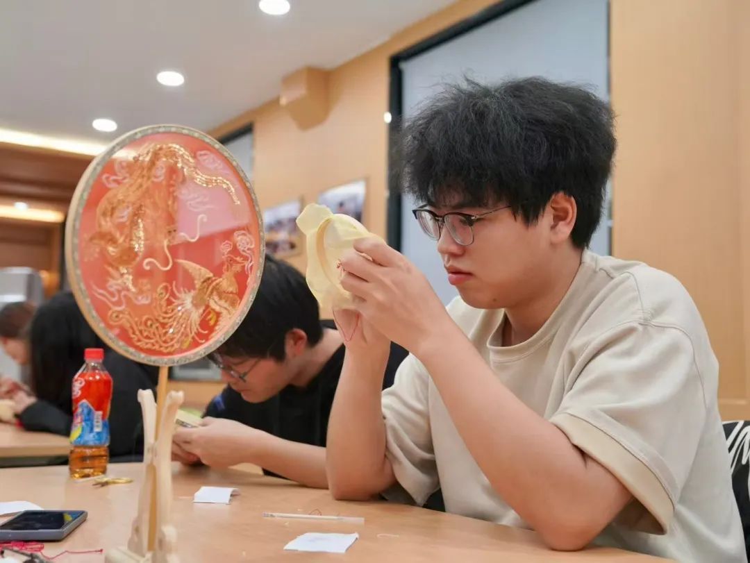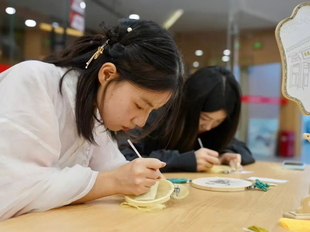 在随后的课程环节,赵俊旗带领参与者开启了刺绣吊坠制作体验之旅。众人在其悉心指导下,亲手感受河洛打籽绣的针法精妙,领略传统刺绣文化的深邃内涵,于针线穿梭间,让这一古老非遗技艺焕发出新的活力与生机,也为河洛文化传承添上了浓墨重彩的一笔。