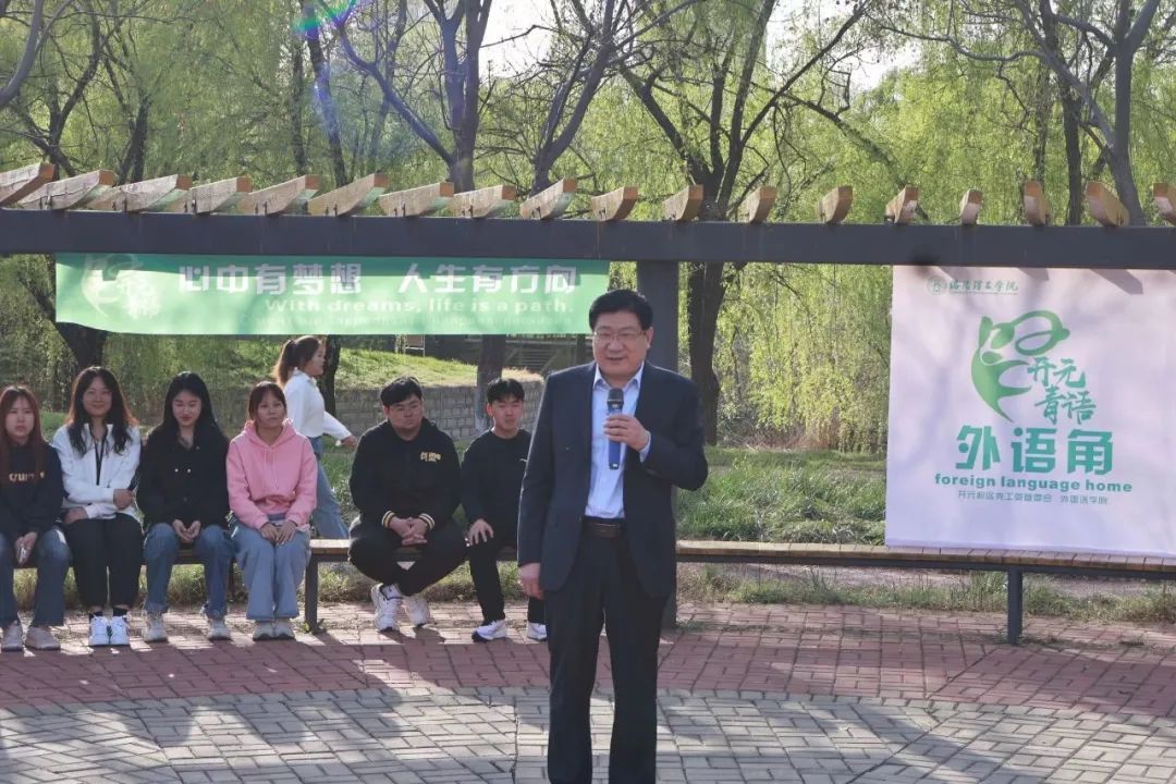 校党委书记卢志文代表学校对“开元青语”外语角的启动给予充分的肯定和祝贺,他表示,语言是沟通世界的工具,连接文化的桥梁,在经济和科技全球化发展的今天,外语能力和水平尤为重要,他结合自身的外语学习经历对外语角建设提出三点希望:一是同学们要珍惜在校学习的大好时机,充分利用外语角等学习资源,努力提升自己的语言水平;二是希望外语角平台充分发挥实践、社交、心理帮扶等作用,为全校学生创造语言实践机会,多举办形式多样、内容丰富的活动,提升同学们外语应用能力,拓展国际视野和知识面;三是希望同学们志存高远,将外语学习与民族振兴相结合,将个人理想与祖国富强相结合,努力学习,在中国式现代化建设进程中,向世界传递中国声音、讲好中国故事,为“中国梦”的实现贡献自己智慧和力量。