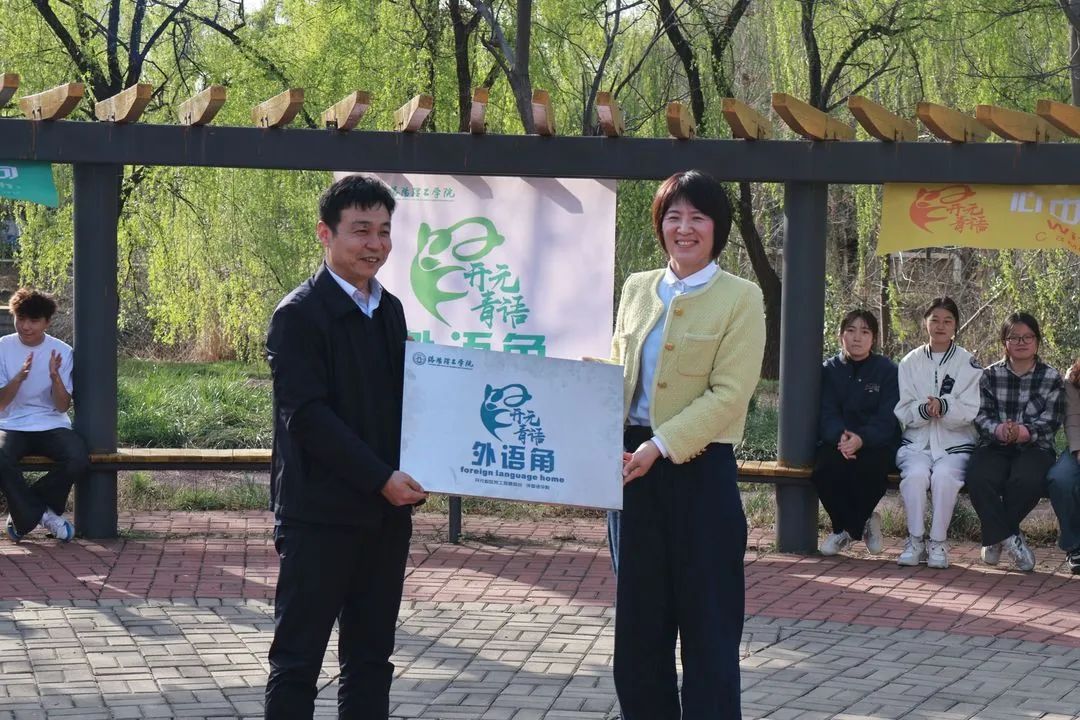 副校长黄志全为“开元青语”外语角授牌,标志着外语角正式启动。外语角的成立既是我校加强学风建设的重要举措,也是推动我校迈向国际化、多元化的新台阶。