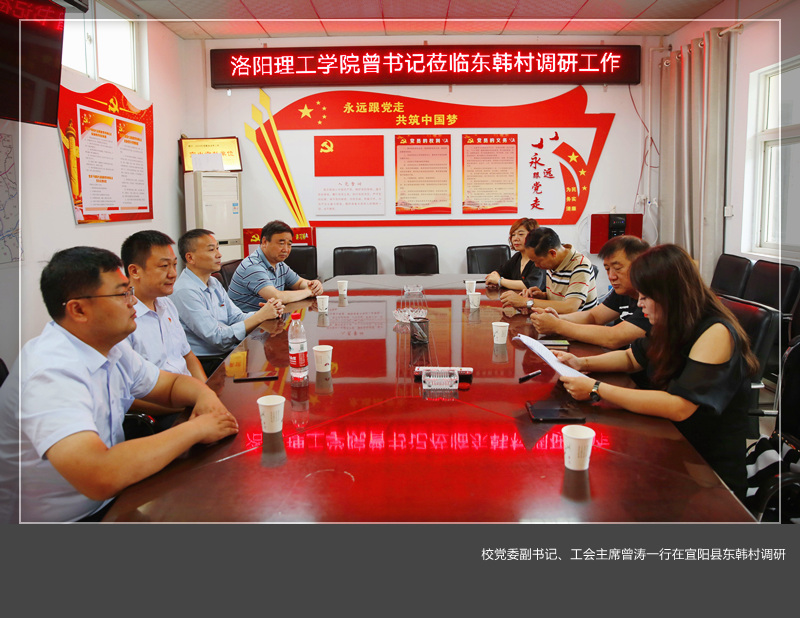 7月24日上午,校党委副书记、工会主席曾涛在学工部、校团委等部门负责同志的陪同下,赴宜阳县香鹿山镇东韩村、韩城镇五岳沟村调研工作,并看望慰问我校驻村“第一书记”、“第一团支部书记”和正在开展暑期社会实践的团队。