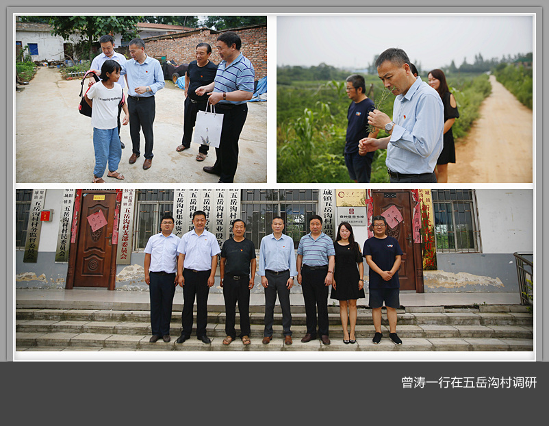 在五岳沟村,曾涛和随行人员实地查看了五岳沟特色种植产业,了解经济作物生长及收益情况,听取了驻村“第一书记”刘湉湉同志的工作汇报,走访贫困群众并为他们送去慰问品。