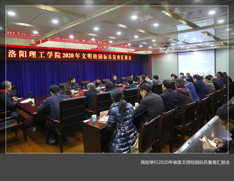 12月14日下午,我校在王城校区办公楼116会议室召开2020年省级文明校园标兵复查汇报会。复查组组长、中共洛龙区委宣传部副部长敖磊,复查组成员候宗辉、秦岭、马莎莎、杨文超,学校领导刘国际、曾涛、李大伟、胡恩立、黄志全以及学校文明委成员单位负责人参加会议,汇报会由校党委副书记、工会主席、文明委副主任曾涛主持。