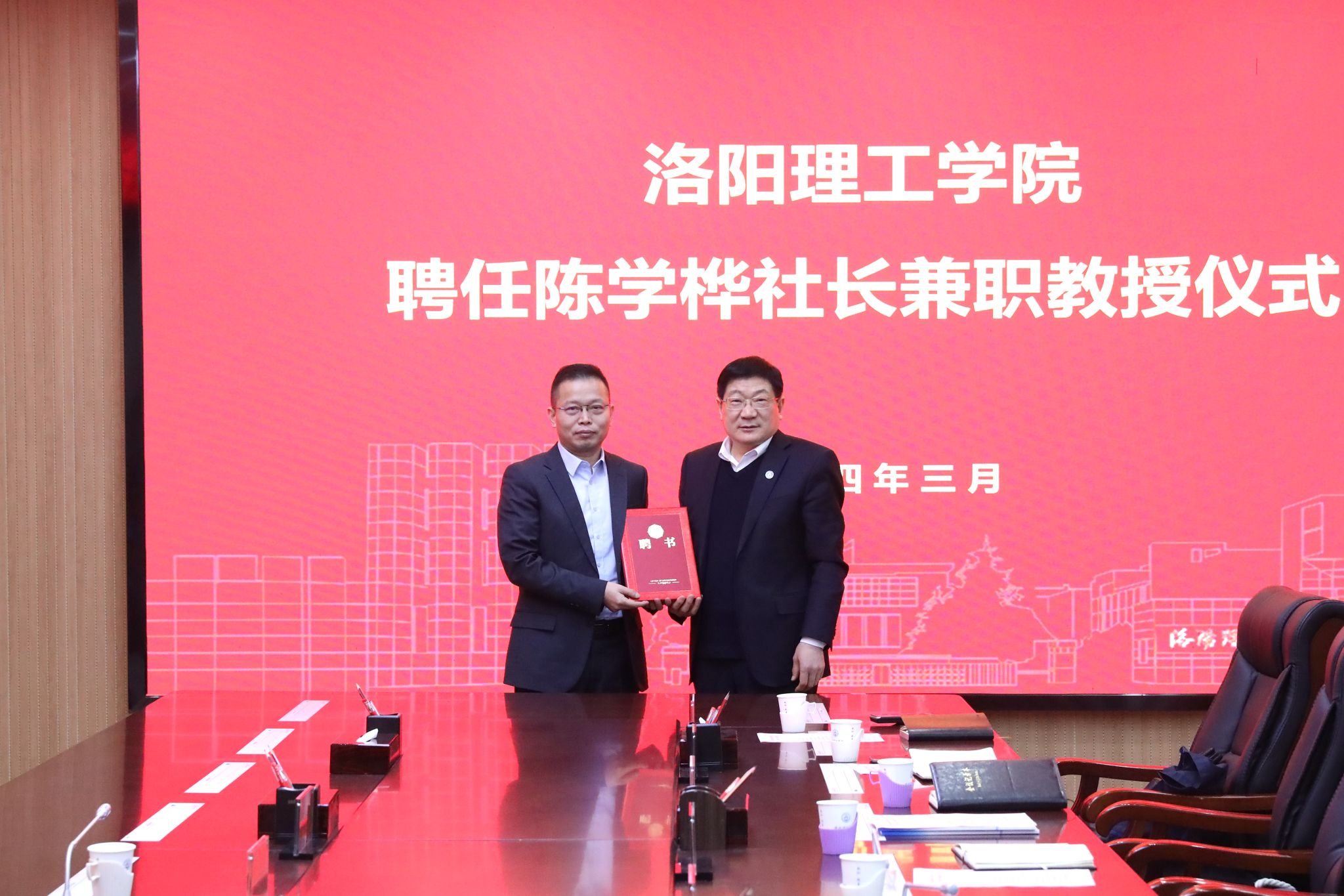 卢志文向陈学桦颁发了乐鱼(中国)兼职教授聘任证书。