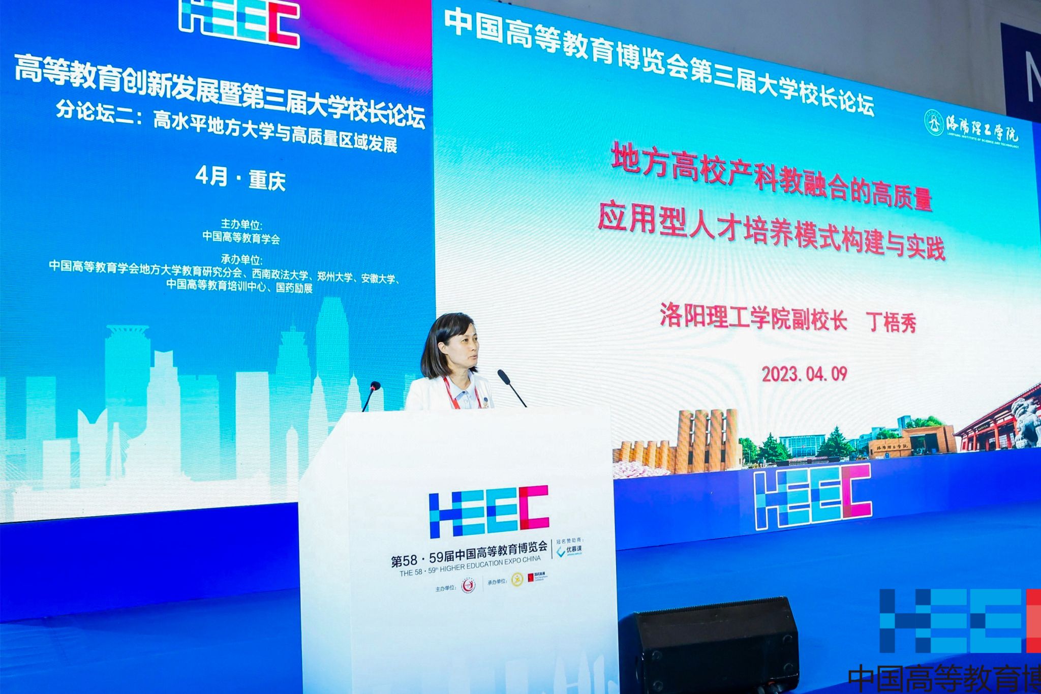 副校长丁梧秀在高等教育创新发展暨第三届大学校长论坛上以《地方高校产科教融合的高质量应用型人才培养模式构建与实践》为题作专题报告