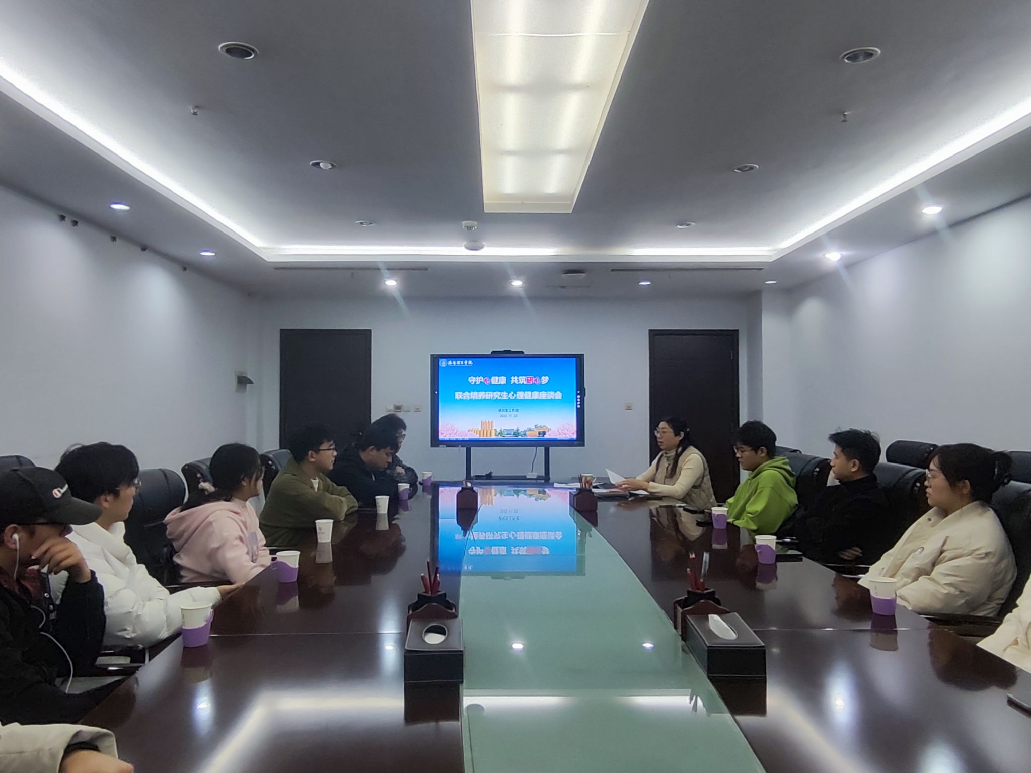 11月23日下午,研究生工作处在王城校区220会议室行政楼召开联合培养研究生心理健康座谈会。会议由张灵玲主持,2021级、2022级在校联合培养研究生20余人参加。