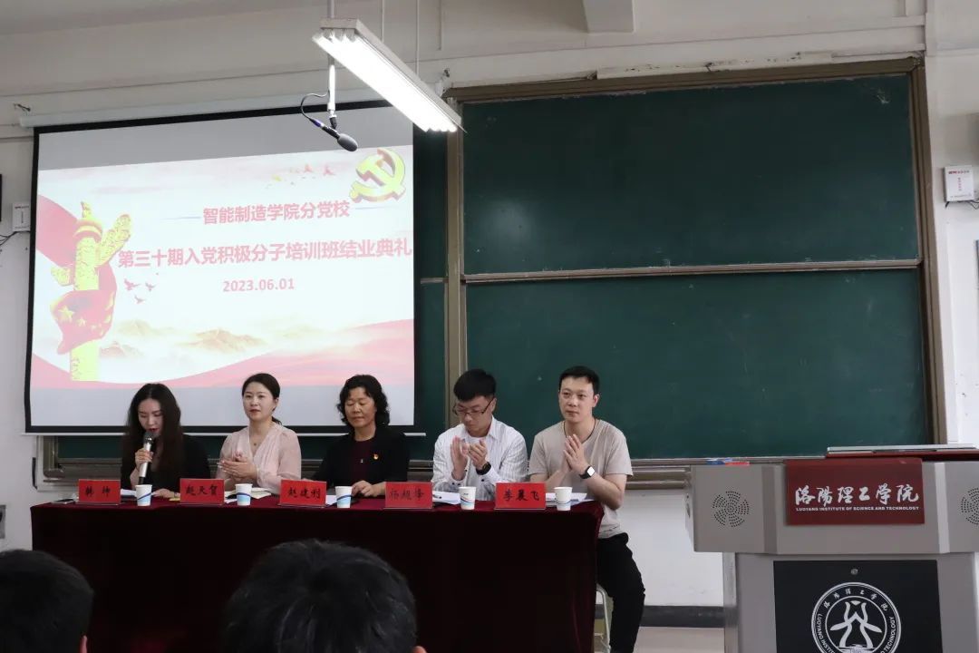 6月1日下午三点,智能制造学院分党校第三十期入党积极分子培训班结业典礼在CS401举行。我院党委书记赵建利、辅导员兼组织员杨超烽、辅导员赵天贺、李晨飞及30期入党积极分子出席本次典礼。结业典礼由我院分党校班主任韩坤老师主持。