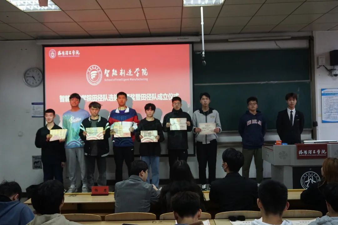 11月9号下午,我院在CN502举行田径队选拔赛颁奖仪式,辅导员赵静雯老师、李晨飞老师,体育部部长杨恩以及获奖运动员代表等70余人参加此次活动。