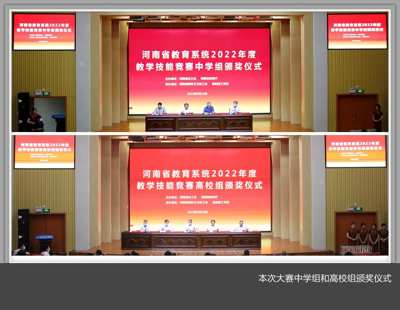 9月12日至16日,由河南省总工会、河南省教育厅主办,河南省教科文卫体工会和我校承办的的河南省教育系统2022年度教学技能竞赛决赛在我校成功举办。