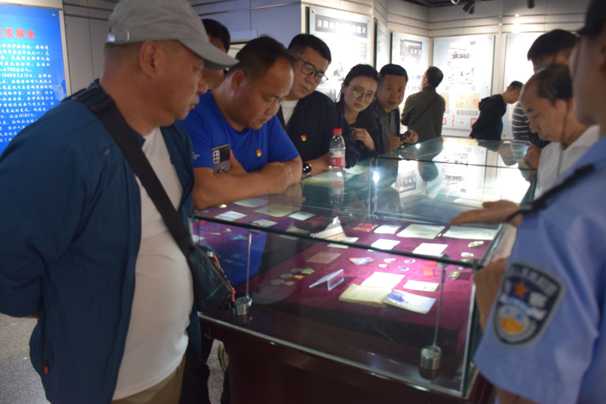 在博物馆大厅,党员们驻足于人民警察誓词与馆标前,感受人民警察忠诚为民的精神内涵。踏入展览区,讲解员的引导下,党员们依次参观了洛阳公安史、警种职能、刑事侦查和公安英烈等展厅。泛黄的历史照片、珍贵的档案文献、老式的警用装备,生动展现了洛阳公安自成立以来,在不同历史时期维护社会稳定、保障人民安宁的光辉历程和卓越贡献。在公安英烈展厅,英烈们的照片庄重肃穆,党员们怀着崇敬之心默默伫立,被英烈们的无私奉献精神深深打动,心中的责任感和使命感油然而生。