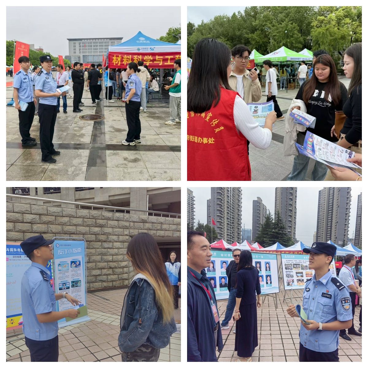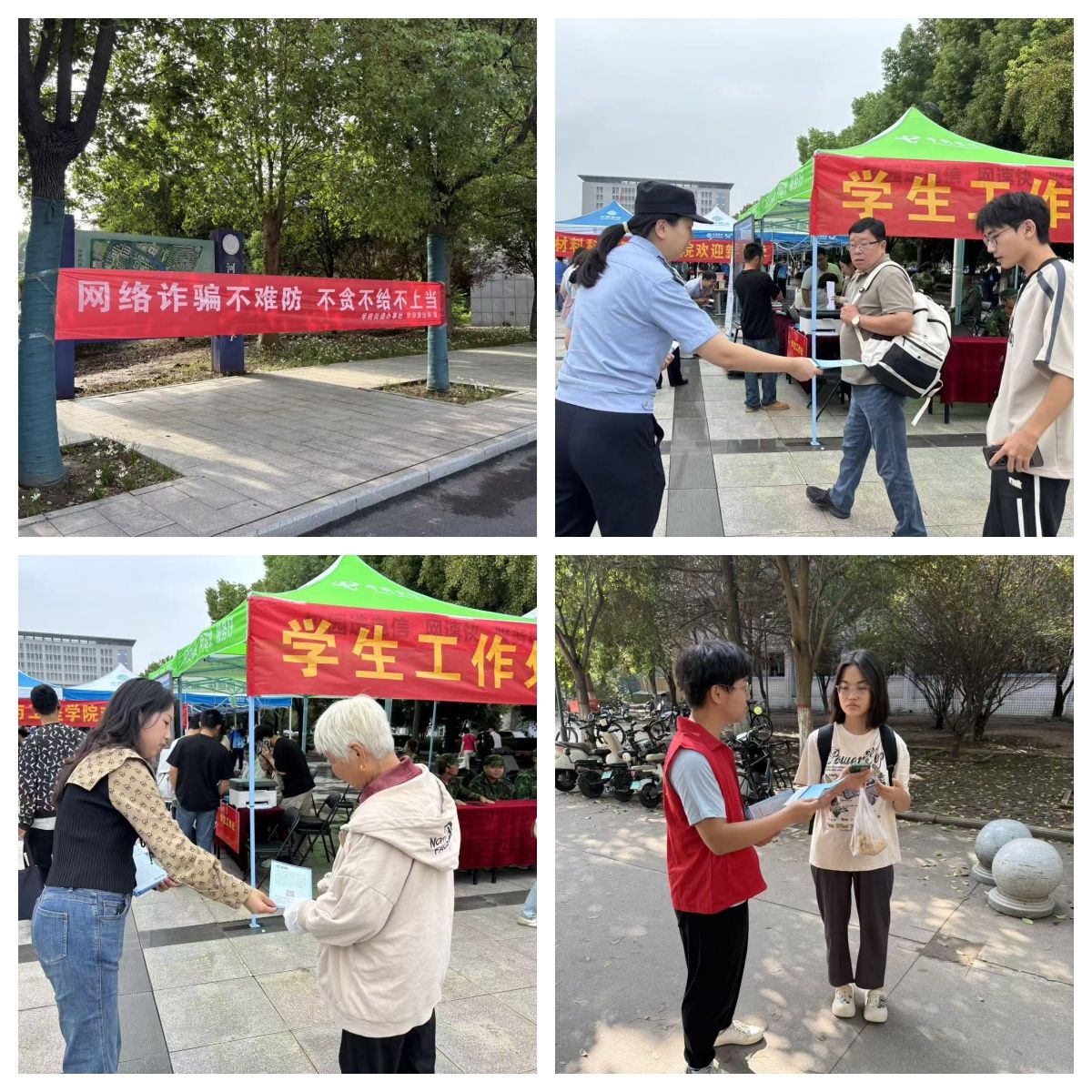 安全教育,提升防范意识。迎新期间,为增强新生及家长防电信网络诈骗意识,政治保卫部联合辖区派出所、驻校民警开展防诈宣传。在校内设反诈宣传点,现场讲解防范知识。同时,围绕开学季安全要点,在校园重点区域发放手册、悬挂横幅、放置展板、张贴海报,帮助新同学树立反诈防骗意识。