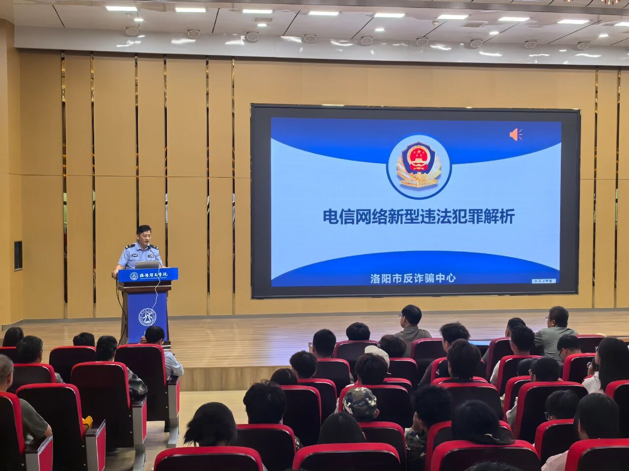 为进一步提升师生反诈意识与识骗防骗能力,有效遏制校园电信网络诈骗案件高发态势,9月18日上午,政治保卫部特邀洛阳市公安局刑侦支队新型犯罪侦查大队副大队长李彬,在开元校区图书馆报告厅开展反诈知识专题培训。各学院副书记、辅导员及部分师生代表参会,共同学习反诈“硬核”知识。