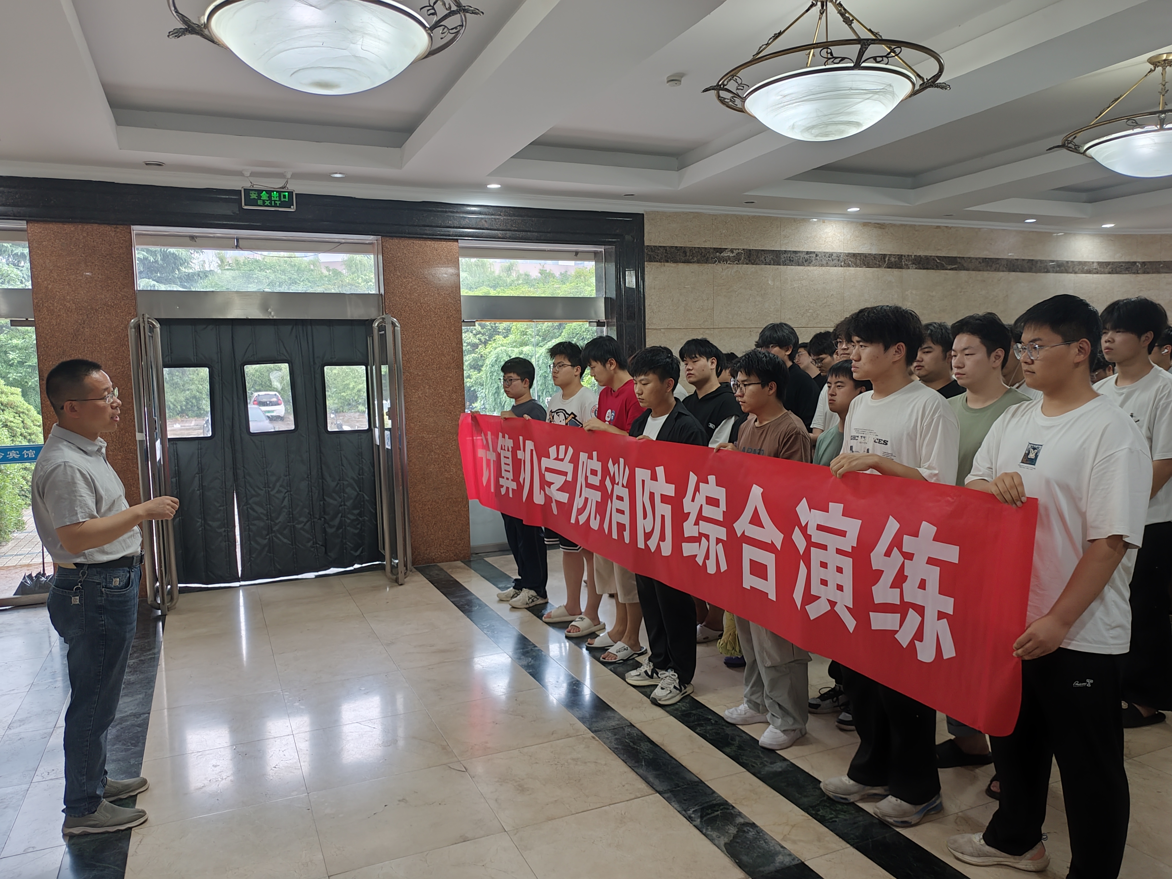 演练开始前,保卫处消防科负责人围绕宿舍用电安全、日常生活注意事项、消防设施管理等内容,讲解了消防安全相关要求。计算机学院负责人从提高思想认识、强化消防安全理念等方面对学生提出了要求。