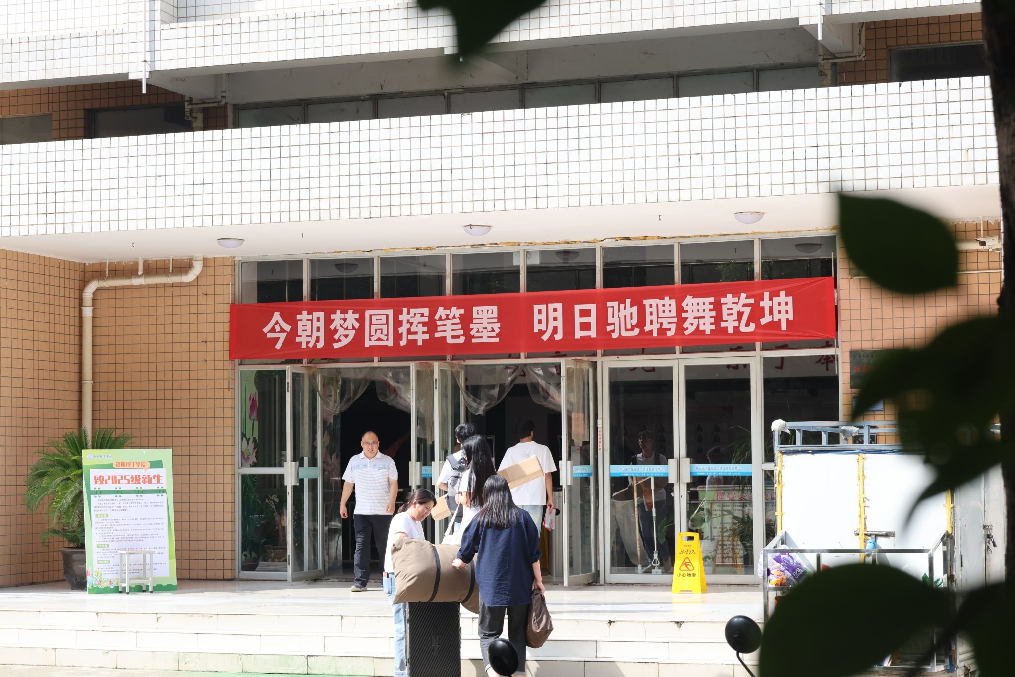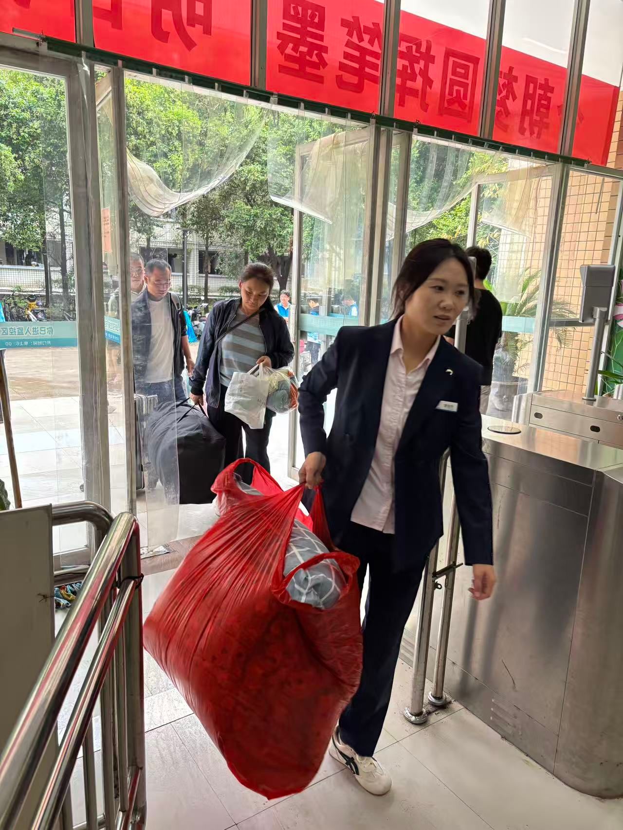 迎新现场,后勤人的身影随处可见:在门口疏导车辆,确保交通顺畅;在行李转运点帮忙搬运行李,汗水浸湿了衣衫;在咨询台耐心解答住宿、就餐疑问,一遍又一遍不厌其烦…… 下雨的时候,他们搭起帐篷、铺上防滑垫、打扫积水等等,这些看似平常的 “小事”,却是后勤人践行 “三服务 三育人” 理念的生动写照。