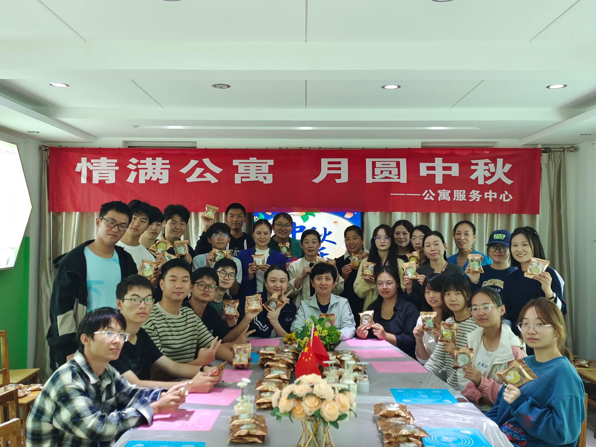 活动结束后,公寓管理员老师们提着装满月饼的盒子,穿梭在公寓楼里 —— 分给宿舍里的同学、坚守岗位的值班老师,还有路过走廊的学子,将这份亲手制作的中秋暖意,传递给每一位 “家人”。