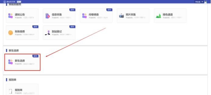 通过网址(https://xsfw.sec.lit.edu.cn/xsfw/sys/yxapp/*default/index.do#/xsbd_new)登录系统后点击“新生选房”服务项,进入网上选房操作(以6人间宿舍为例,其他户型选房操作办法与此相同)。
