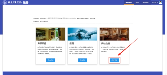 5.选房时间已按新生所在学院划分好,请同学们按本通知安排选房时间登录系统,非本学院选房时间将不可登录。