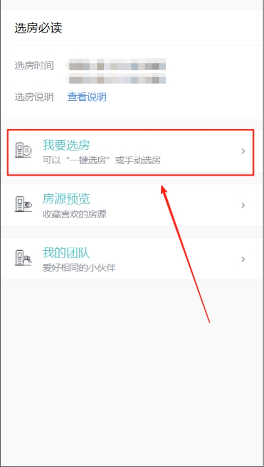 点击“我要选房”展示可选宿舍如下图,确认适合宿舍后点击“选择”进入宿舍详情页面。
