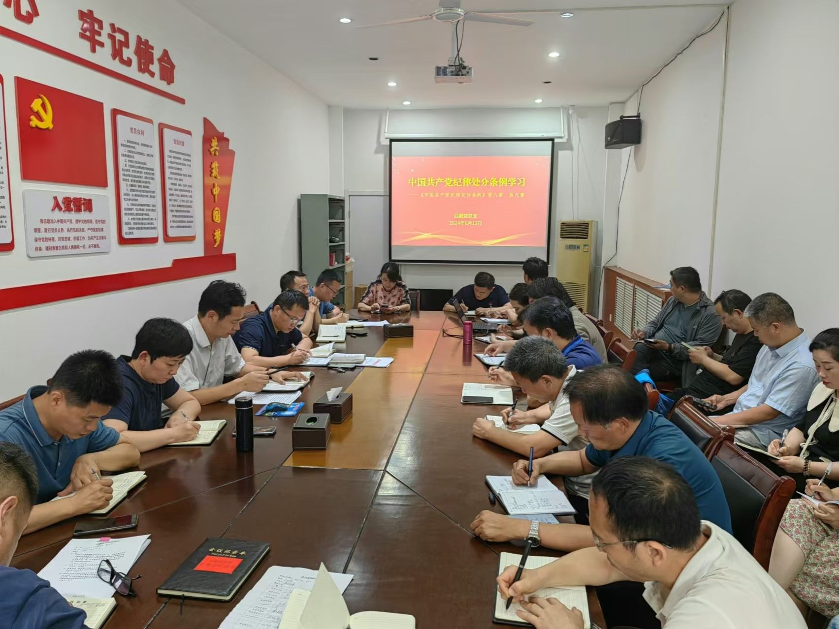 党总支通过专题读书班、中心组集中学习研讨、领导班子成员专题辅导,观看警示教育片等形式,学习贯彻习近平总书记关于全面从严治党、党风廉政建设和反腐败斗争工作重要论述和最新指示批示精神,紧扣党的政治纪律、组织纪律、廉洁纪律、群众纪律、工作纪律、生活纪律进行研讨,逐章逐句研读《中国共产党纪律处分条例》,真正做到入脑入心;引导党员干部增强党性观念、纪律规矩意识,自觉遵守党纪党规。