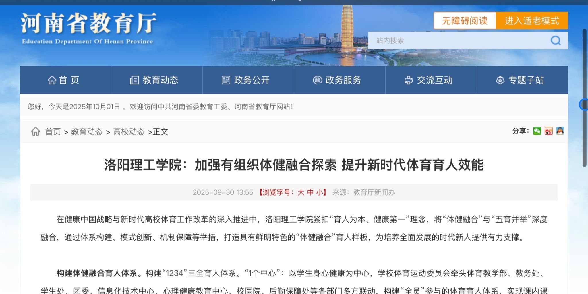 河南省教育厅等多个平台报道我校打造“体健融合”育人样板