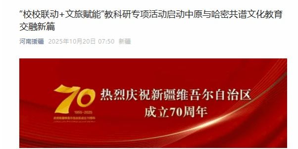 河南援疆公众号报道我校与新疆铁道职业技术学院联合主办“校校联动+文旅赋能”教科研专项活动