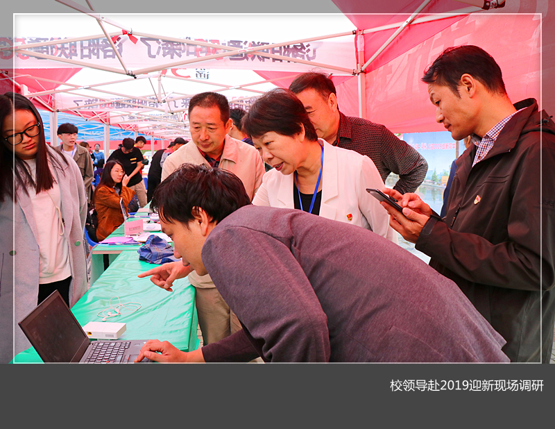 9月14日,我校2019级新生报到第一天。上午9点30分,校领导陈岩、刘国际、葛玻、王晓峰、丁梧秀、曾涛一行先后来到王城校区、开元校区、九都校区调研迎新工作情况。