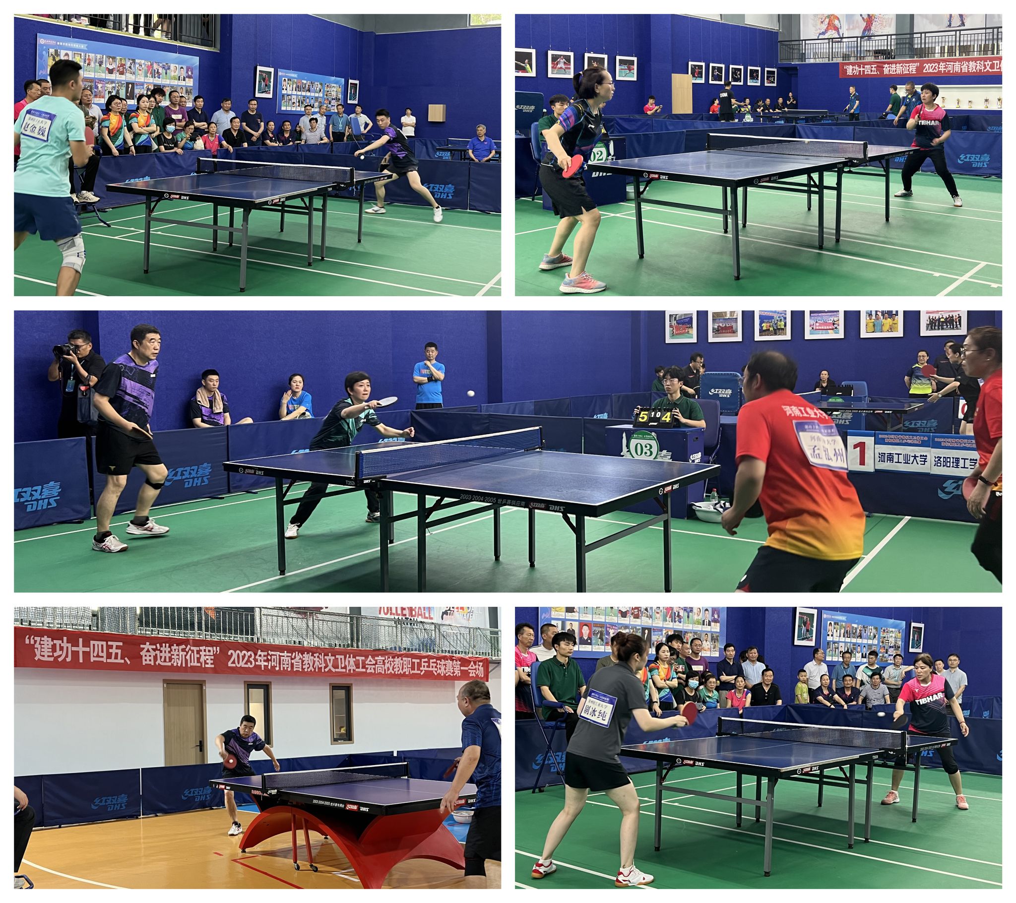 6月9日至10日,“建功十四五,奋进新征程”2023年河南省教科文卫体工会高校教职工乒乓球比赛在信阳师范学院举行。来自全省38支高校代表队近200人参加了本次比赛,乐鱼(中国)教职工乒乓球代表队在校工会的组织下参加了本次比赛。经过激烈角逐,乐鱼(中国)教职工乒乓球代表队荣获团体冠军;体育教学部刘一凡老师、郭庆生老师,后勤管理处王静老师分别荣获男子青年组、男子中年组、女子中年组单打亚军;乐鱼(中国)获得本次比赛优秀组织奖。