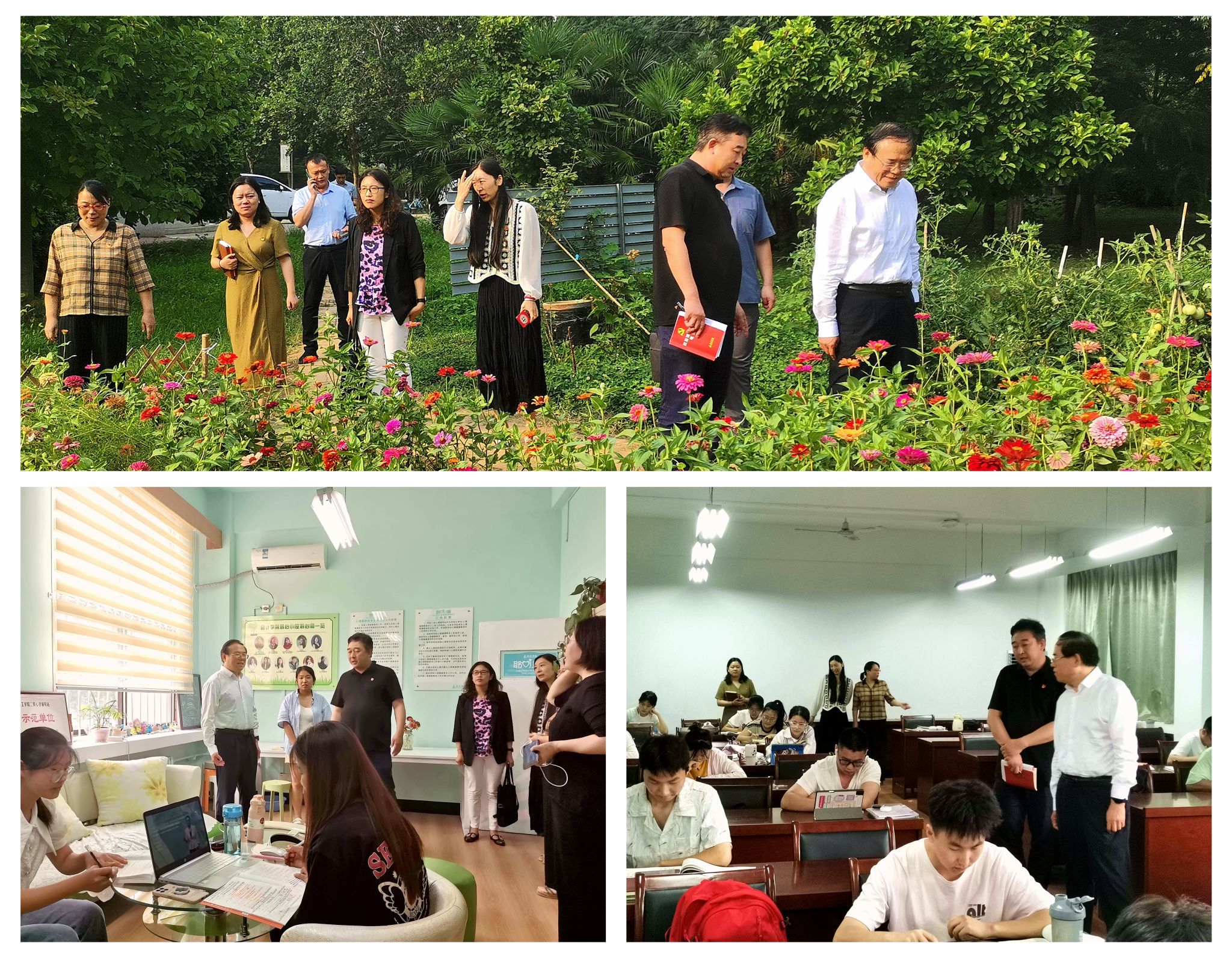 指导组一行现场参观调研了会计学院“种花家”劳动教育基地、二级心理辅导站“聆心小屋”以及考研自习室,就大学生劳动教育、心理健康教育、职业规划等工作提出了宝贵指导意见。