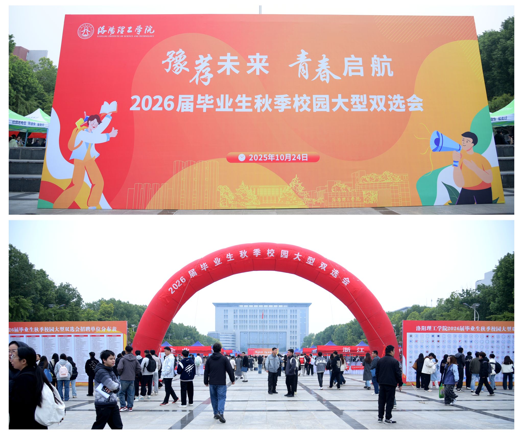 秋意正浓,青春扬帆。10月24日,我校在王城校区鼎元广场举办“豫荐未来 青春起航”2026届毕业生秋季校园大型双选会,吸引全国各地350余家优质企业及8个地市的组团企业参会,为2026届毕业生提供超1.5万个就业岗位。