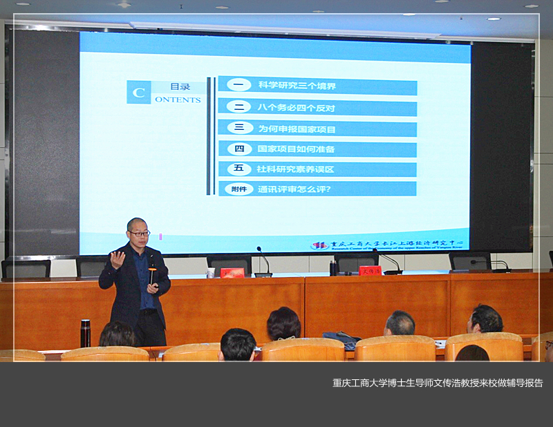 文传浩教授从国家社科基金申报的准备、选题、表格填写等七个方面,结合自己亲身指导的成功案例,分专题进行了系统、细致、深入的讲解。他的讲解既高屋建瓴,又细致入微,有着很强的指导性和可操作性,使在座的各位教师深受教益。