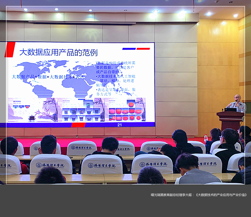 11月7日下午,曙光瑞翼教育副总经理、瑞翼教育研究院常务副院长李大超应邀,在我校开元校区报告厅作题为《大数据技术的产业应用与产业价值》的专题讲座。计算机与信息工程学院的300多名学生代表参加了本次讲座。