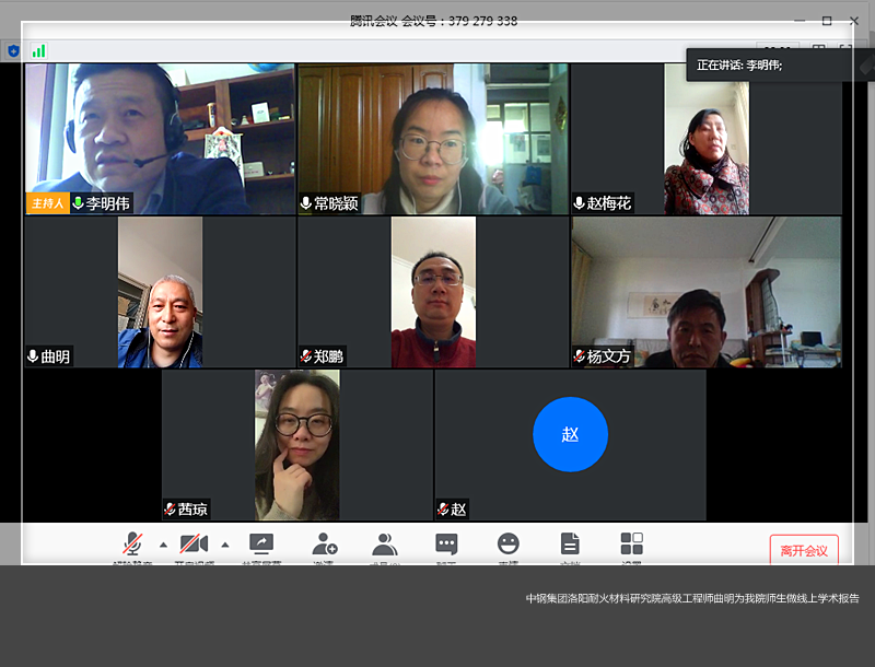中钢集团洛阳耐火材料研究院高级工程师曲明为电气学院师生做线上学术报告