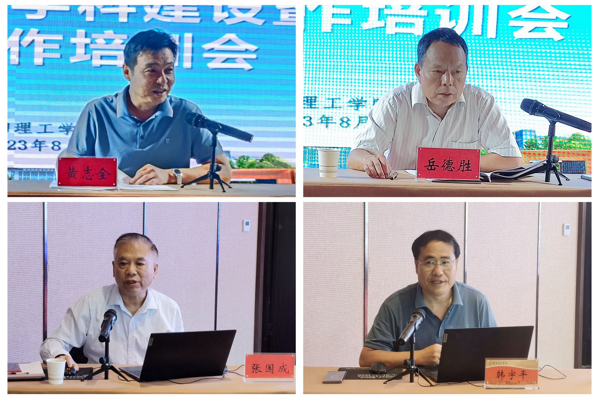 副校长黄志全主持会议并讲话;河南省教育厅副总督学岳德胜,原河南理工大学研究生工作部部长、研究生院院长张国成,华北水利水电大学一流学科创建办公室主任韩宇平三位专家作专题培训报告