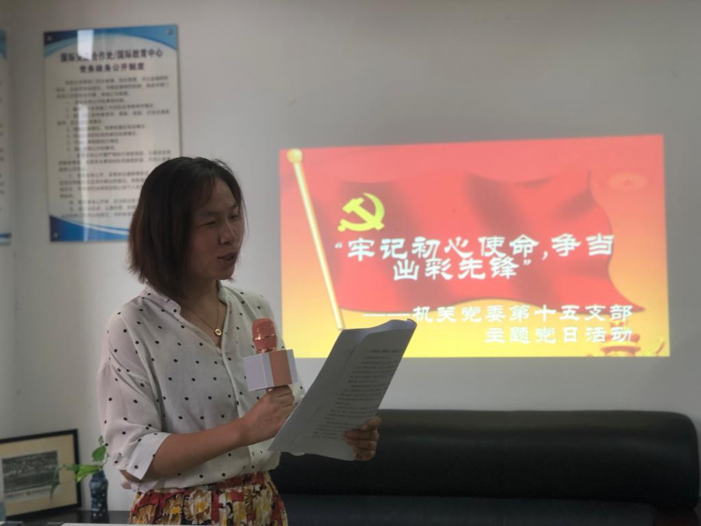 2020年7月3日,在支部书记易明同志的组织下,机关党委第十五支部全体党员干部在行政楼256开展了7月党日活动,本次党日活动的主题为“微党课,颂党情”。