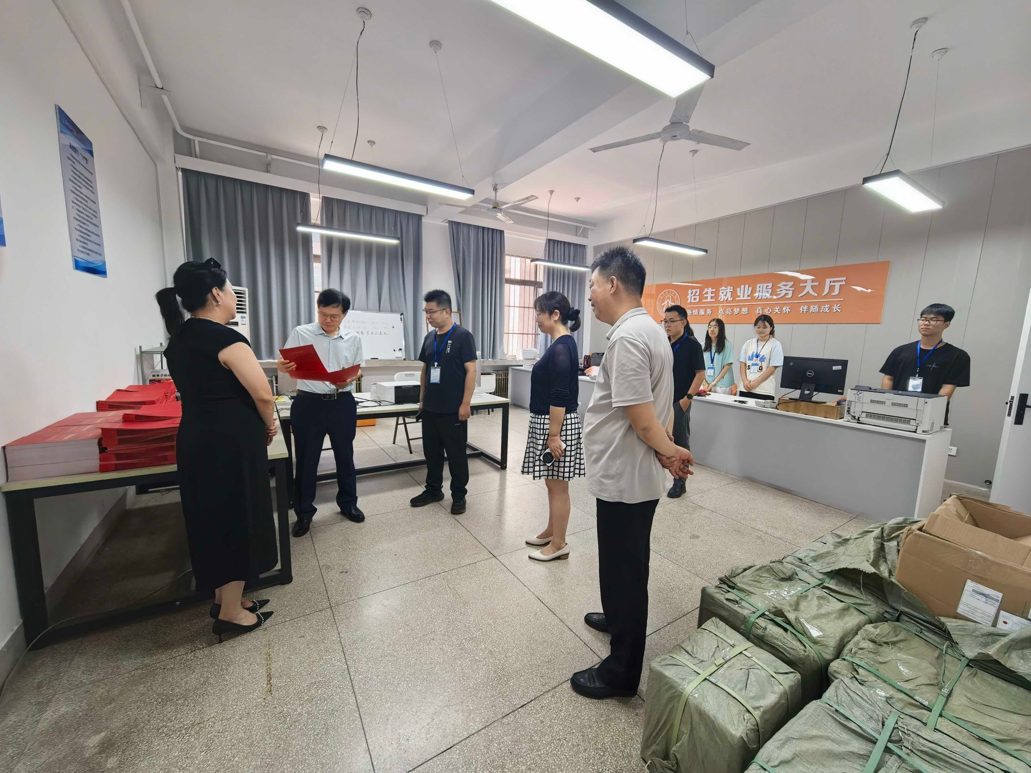 刘楠详细听取招生就业处关于考生咨询服务、录取流程、批次安排及预留计划调配情况的汇报,现场查看了投档审核、专业分配、计划调整等环节的操作规范性,并对现场工作人员表示慰问和肯定。