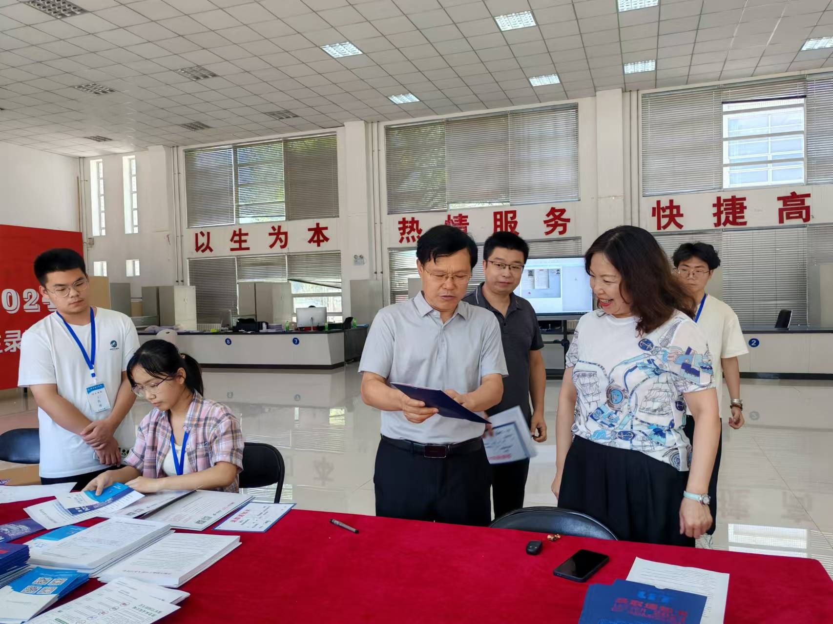 刘楠在现场详细询问了招生录取工作流程、录取工作进度、廉政风险防范和纪律执行,以及就业进展等情况;与工作人员进行深入交流,现场查看了录取各环节工作运行,向暑期奋战在一线的工作人员表示慰问和肯定。