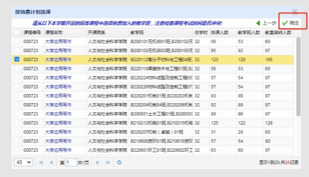 1.重修报名人数超过20人(含)的课程/环节,院(部)可单独组班,安排任课教师、时间、地点,组织教学;