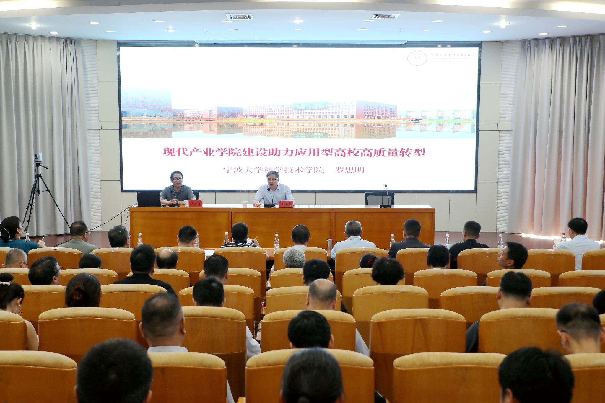 本次报告会特邀宁波大学科学技术学院校务委员会常务副主任罗思明教授担任主讲嘉宾。罗教授以宁波大学科技学院的实践为基础,系统阐述了现代产业学院的顶层设计、校企合作模式及人才培养机制。他分享了“双轮驱动、四链对接”“共建共管共育共享”等创新理念,并通过公牛学院、新海学院、慈星智能产业学院等鲜活案例,生动展示了产教融合在提升学生创新能力、就业质量及学校社会影响力方面的显著成效。