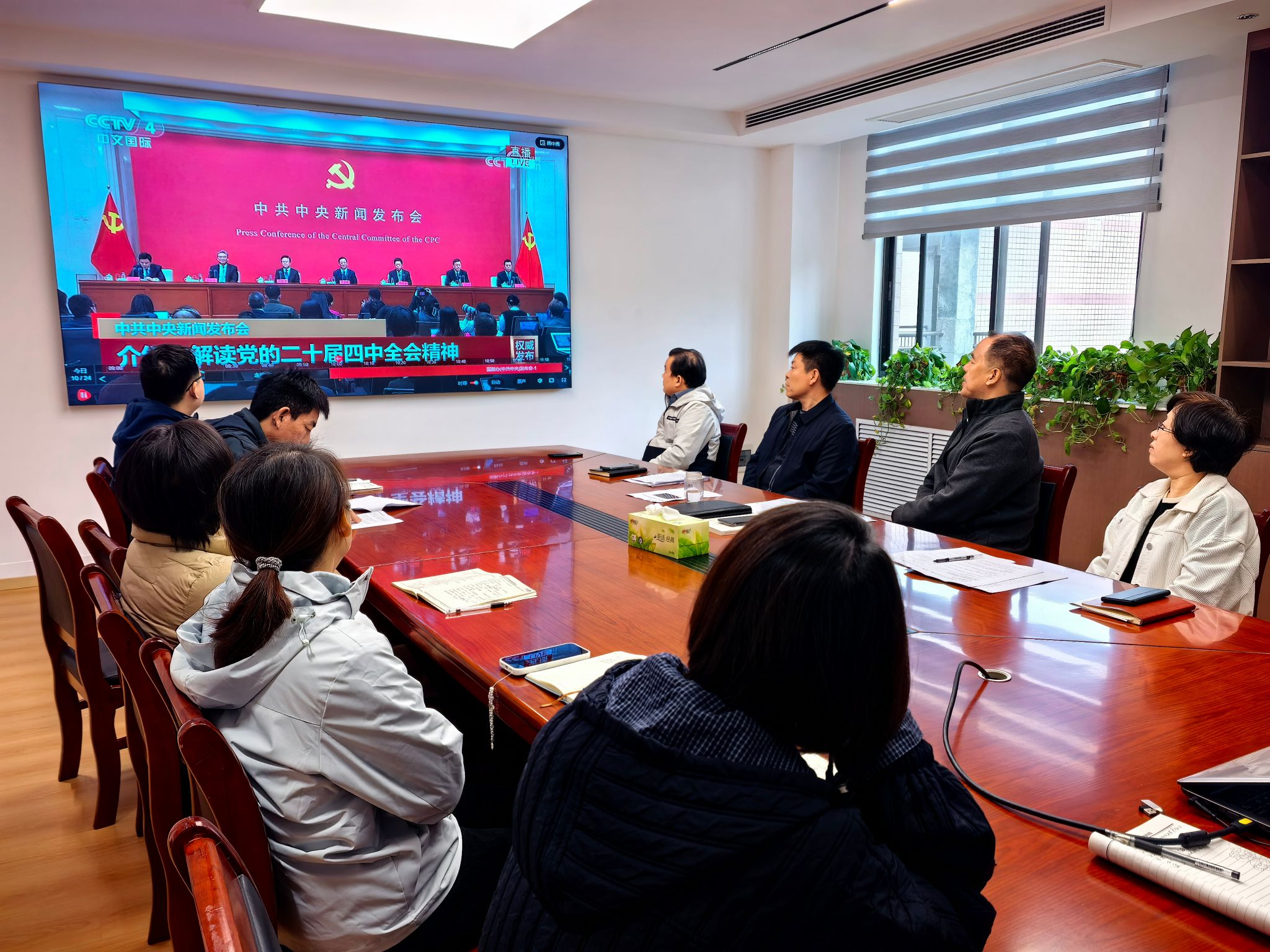 随后,全体教职工集体观看党的二十届四中全会新闻发布会,通过权威解读进一步明晰全会精神的丰富内涵与实践要求,深化了对“教育是国之大计、党之大计”的认识,增强了立足继续教育领域服务全民终身学习体系建设的责任感与使命感。