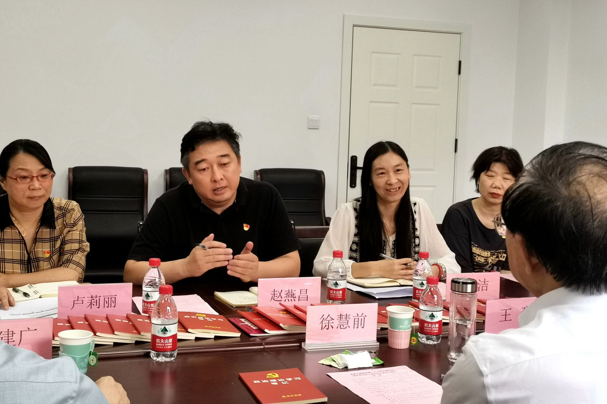 7月19日下午,河南省委学习贯彻习近平新时代中国特色社会主义思想主题教育第二十五巡回指导组组长、濮阳市政协主席徐慧前,巡回指导组成员、中原工学院机关党委副书记王淼一行深入我校会计学院调研指导主题教育工作。校党委组织部部长戴建广、副部长王岩陪同调研。会计学院在院领导班子成员、党支部书记及辅导员参加了调研汇报。