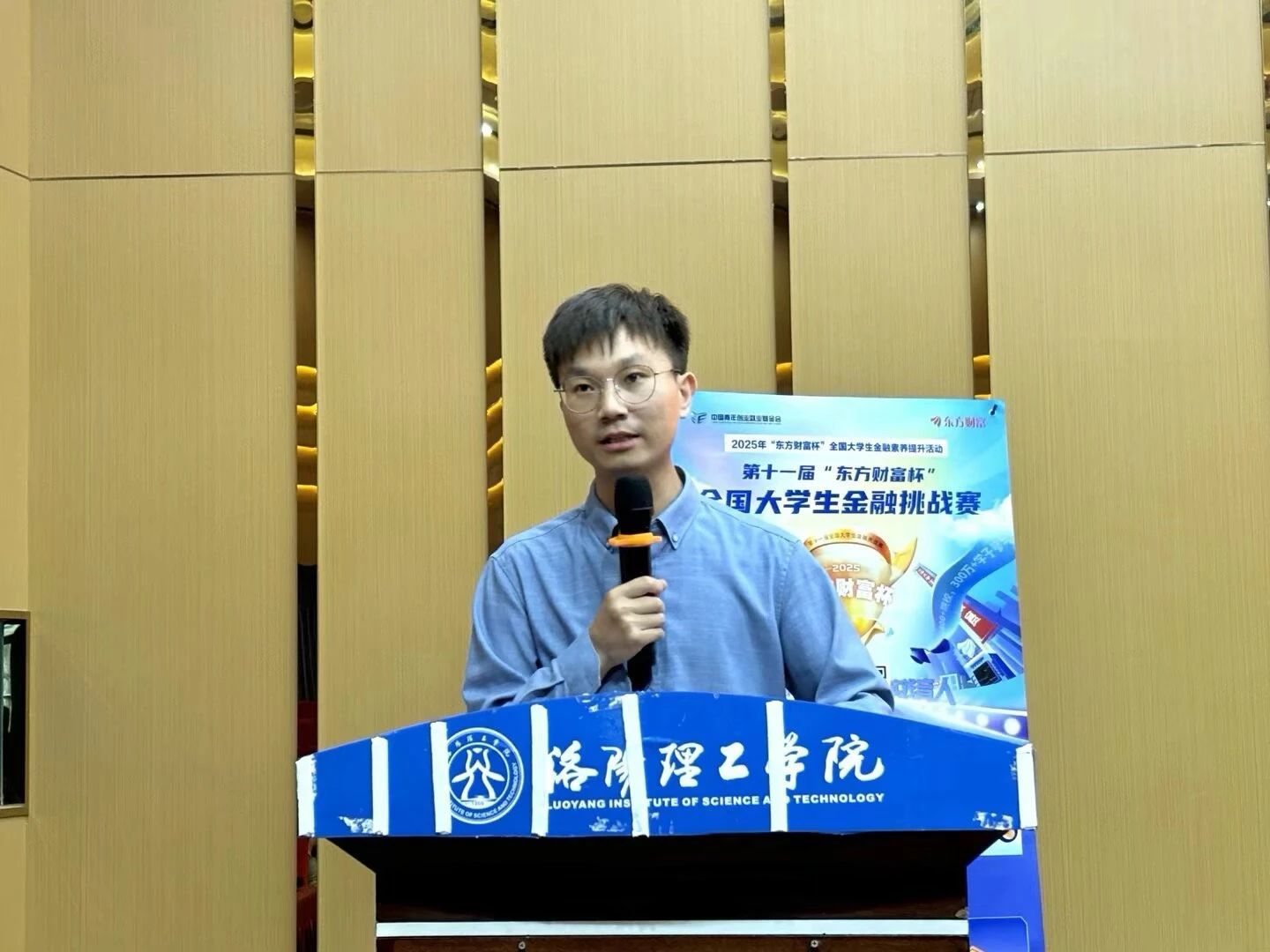 为培养我校学生金融实践能力,并解读第十一届“东方财富杯”全国大学生金融挑战赛的赛程安排、竞赛规则及实战技巧,为参赛同学提供专业指导。校团委与会计学院特邀东方财富金融挑战赛河南区域负责人李思婷、东方财富证券郑州桐柏路营业部总经理李海峰于6月13日下午在图书馆报告厅举办“素养筑基,赛场砺锋”会计学院金融知识讲座暨“东方财富杯”全国大学生金融挑战赛宣讲会。会计学院副院长蔡洁、团委副书记温跃卫出席。本次讲座由温跃卫主持。