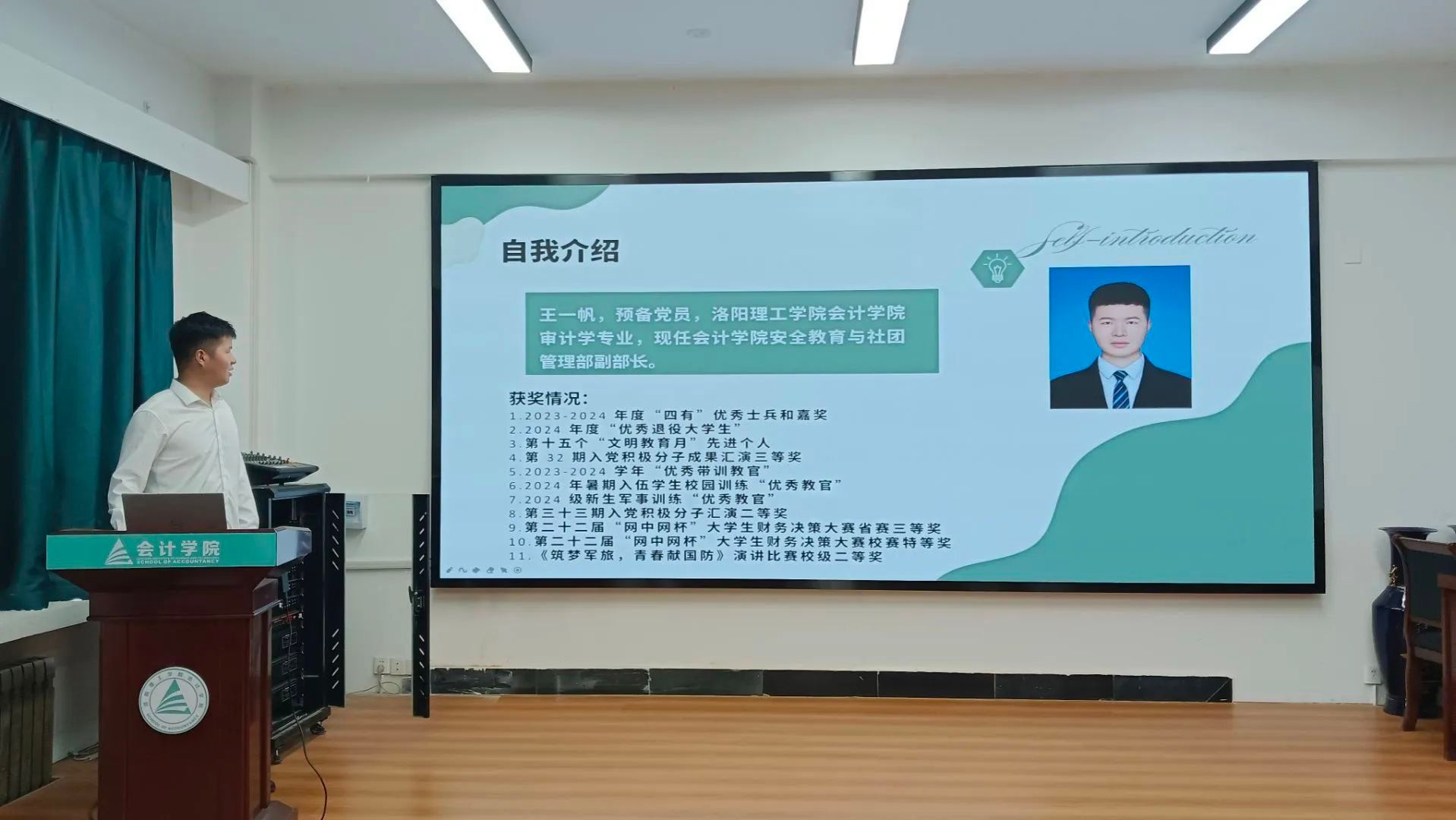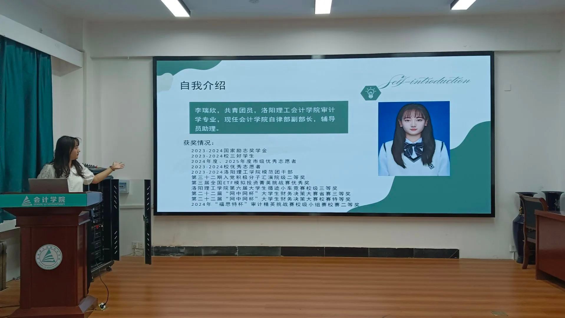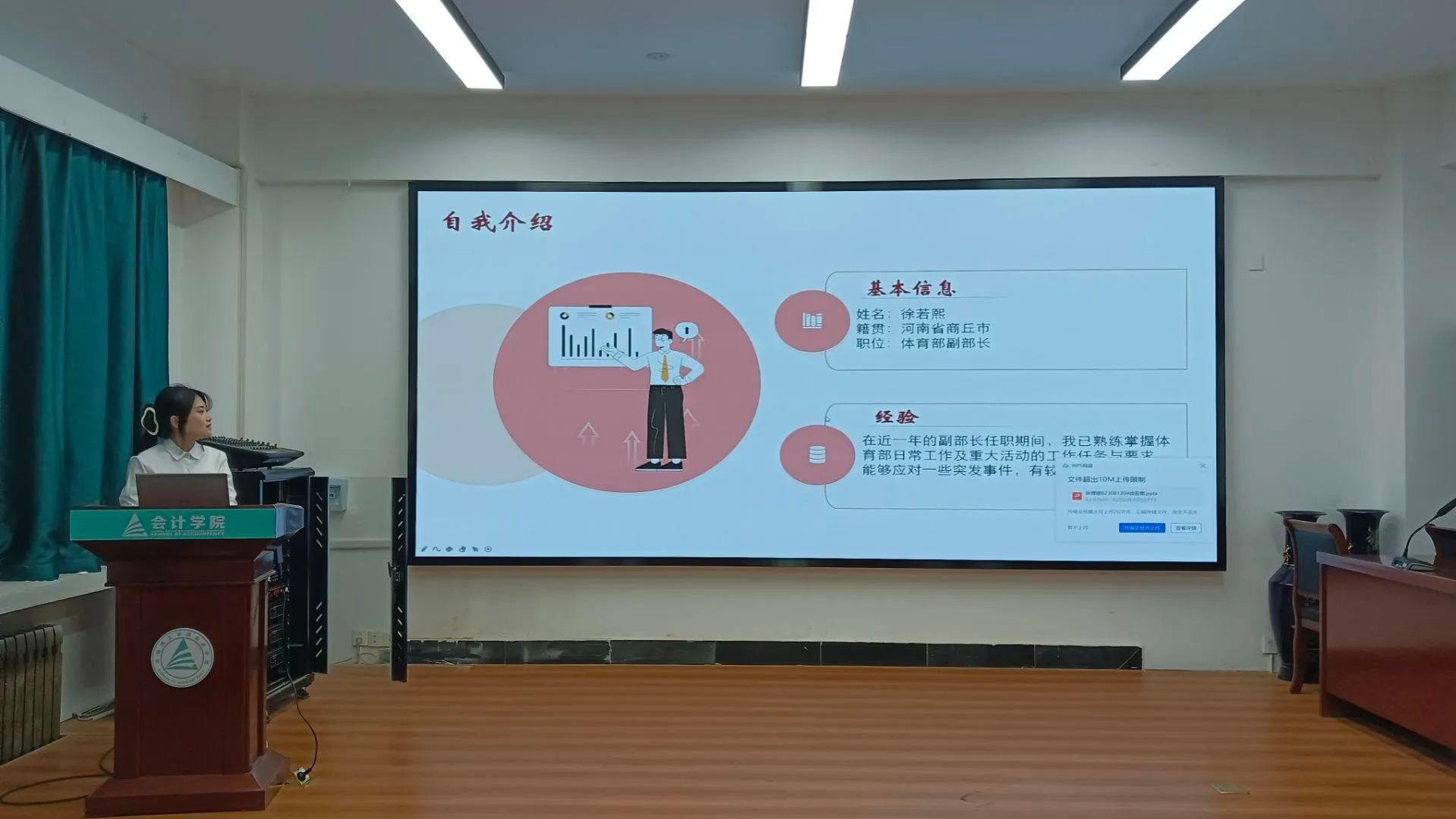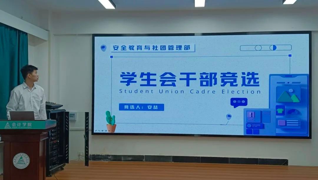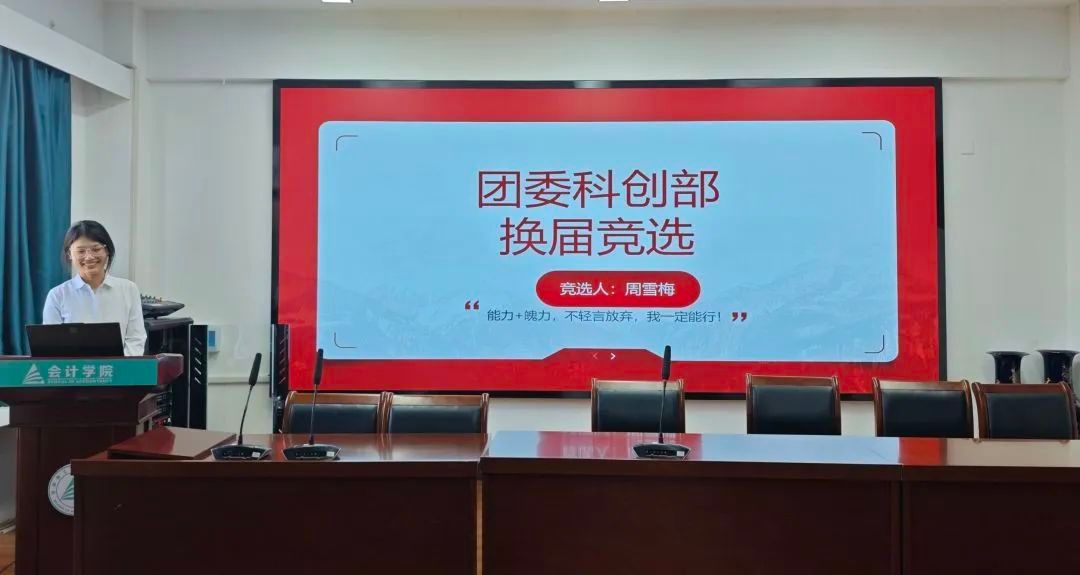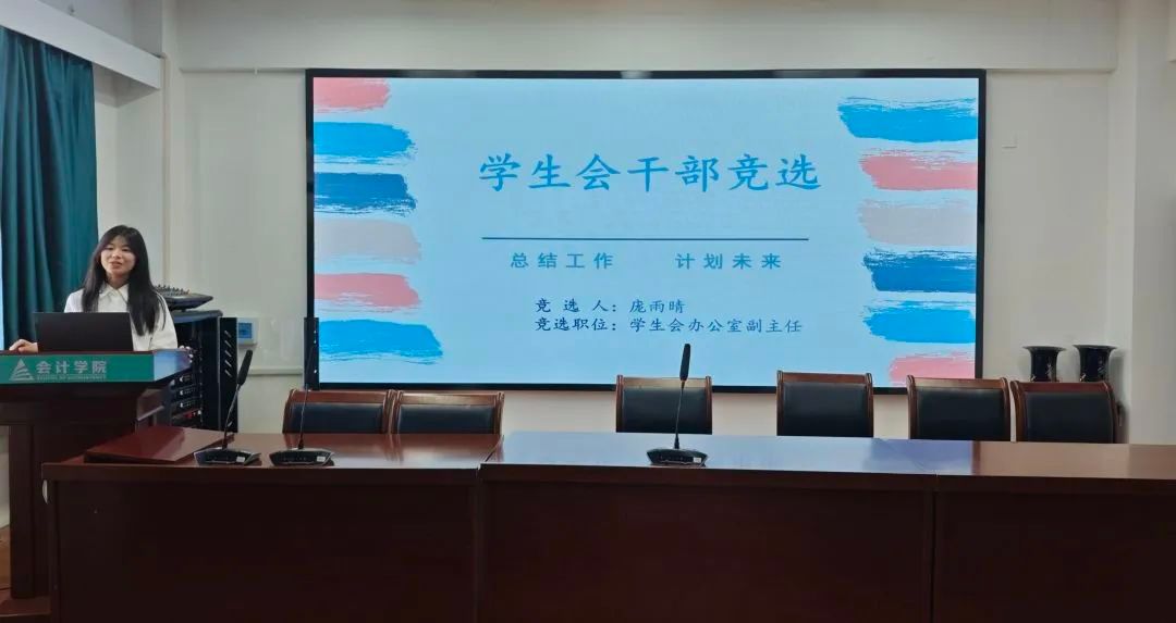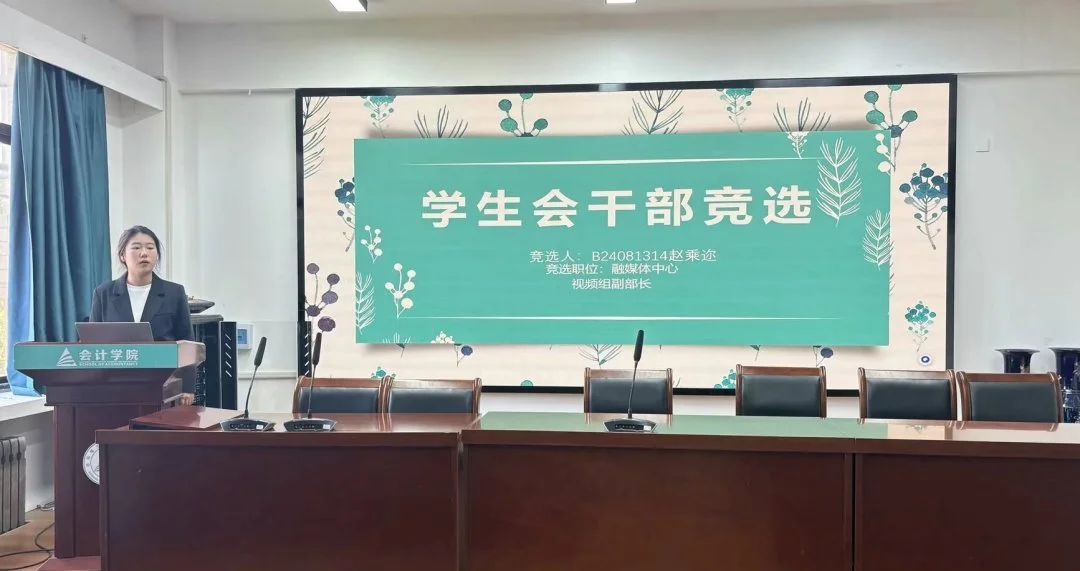 大会现场气氛庄重而热烈。参与竞选的同学们依次进行述职演讲,从个人履职情况、部门工作规划、学院发展建议等多个维度展开陈述。竞选者们或通过详实的工作方案展现专业素养,或以丰富的实践经验彰显组织才能,充分展现了会计学院学生干部的责任担当与青春风采。